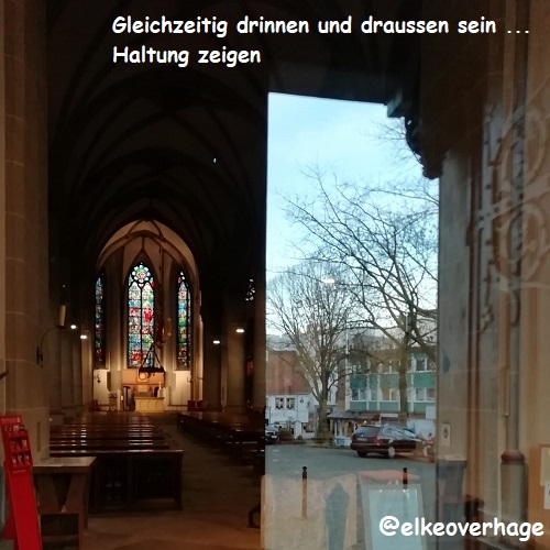 Ich wünsche allen einen schönen 4. Advent. Das Foto ist in der Tür der Propsteikirche St. Peter und Paul, Untere Marktstraße in Bochum entstanden. Für uns: Wie es drinnen und vor allem in uns aussieht, haben wir selbst in der Hand. Wenn wir eine achtsame Haltung pflegen, dann erscheint uns das Äußere anders.