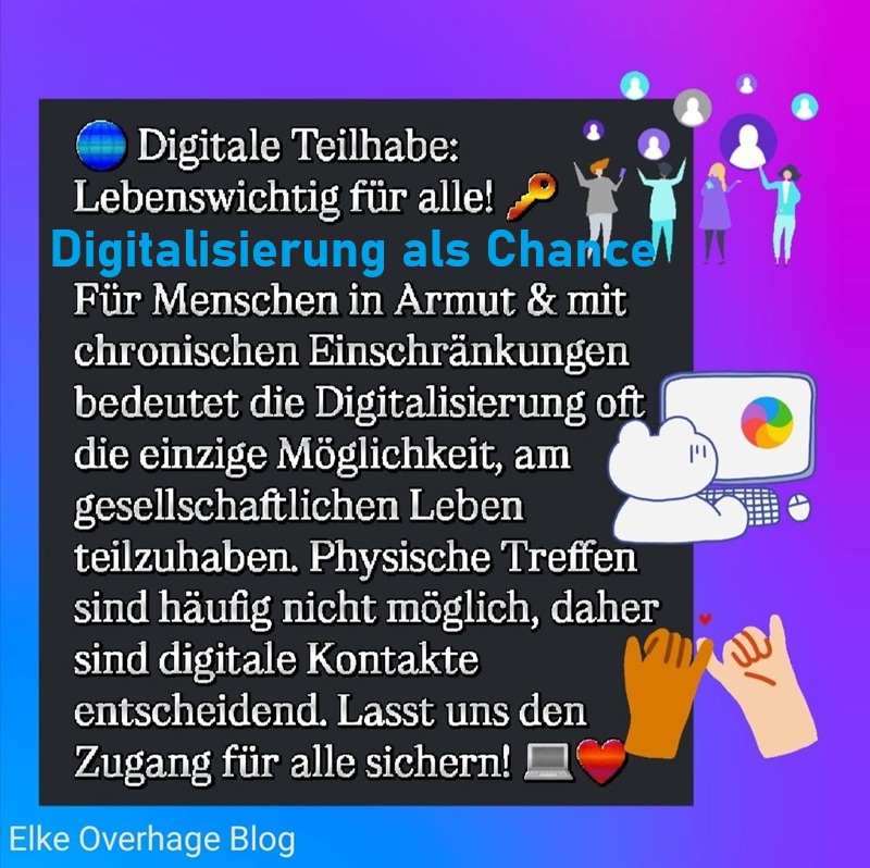 Für Menschen in Armut & mit chronischen Einschränkungen bedeutet die Digitalisierung oft die einzige Möglichkeit, am gesellschaftlichen Leben teilzuhaben. Physische Treffen sind häufig nicht möglich, daher sind digitale Kontakte entscheidend. Lasst uns den Zugang für alle sichern!