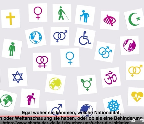 Ziel der Initiative ist ein vorurteilsfreies Arbeitsumfeld und dass alle Beschäftigten – unabhängig von Alter, ethnischer Herkunft und Nationalität, Geschlecht und geschlechtlicher Identität, körperlichen und geistigen Fähigkeiten, Religion und Weltanschauung, sexueller Orientierung und sozialer Herkunft – Wertschätzung erfahren. (https://www.charta-der-vielfalt.de/)