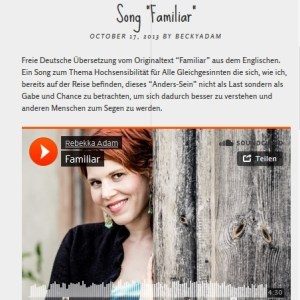 Freie Deutsche Übersetzung vom Originaltext „Familiar“ aus dem Englischen. Ein Song zum Thema Hochsensibilität für Alle Gleichgesinnten die sich, wie ich, bereits auf der Reise befinden, dieses „Anders-Sein“ nicht als Last sondern als Gabe und Chance zu betrachten, um sich dadurch besser zu verstehen und anderen Menschen zum Segen zu werden.